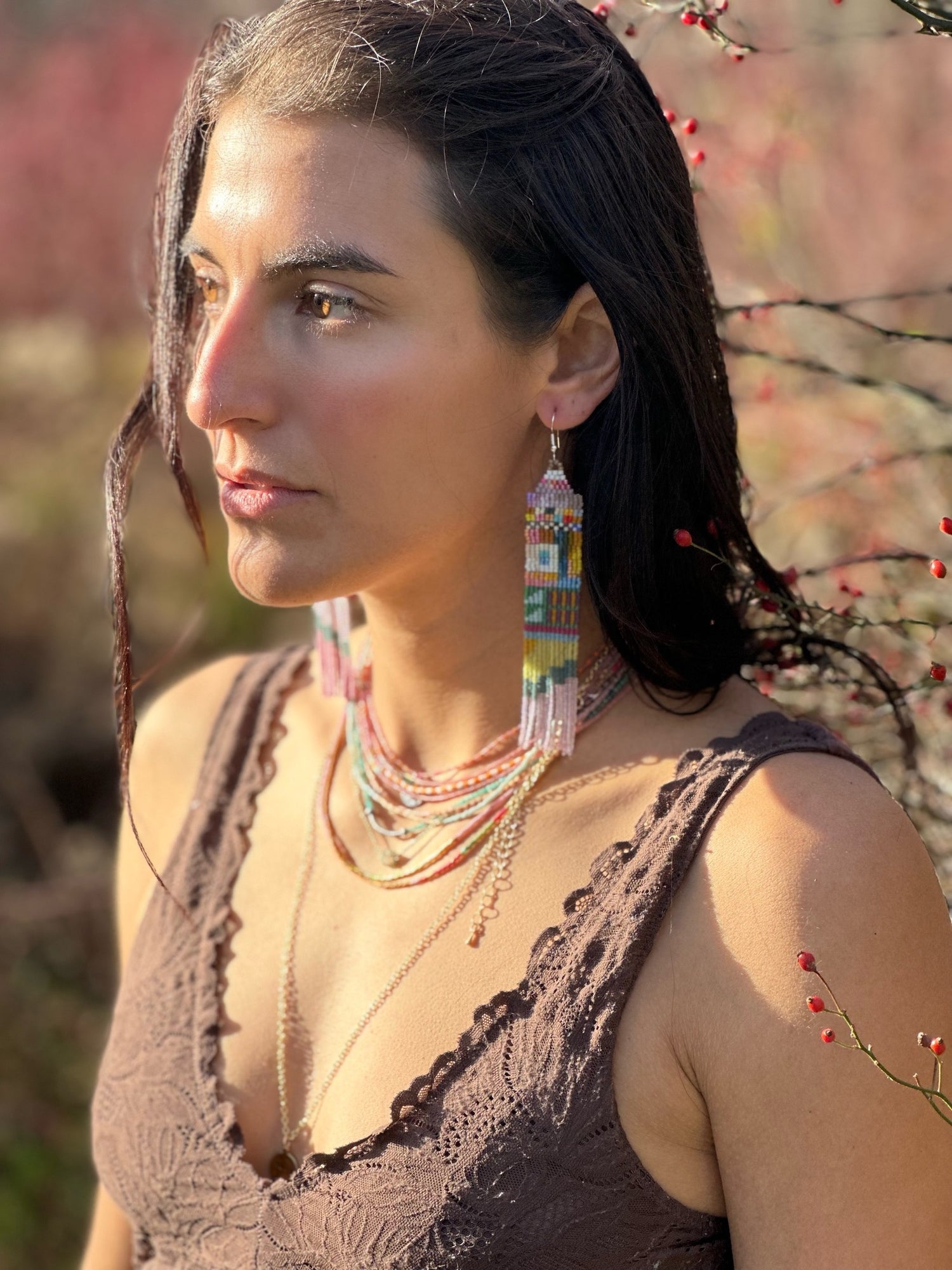 "The beaded earrings are completely handmade, and so well crafted. I can see the time and effort it takes to make each piece. Natasha is very responsive to custom styles. I have worn every piece, with the love that I know went into making it."